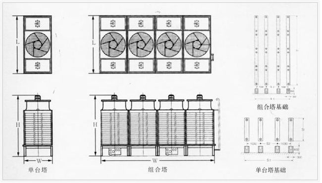 詳細信息: 1.橫流式冷卻塔采用長方型設計,占地面積小,配合建筑物,造型美觀,冷卻容量大,可多臺組合使用。