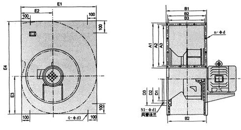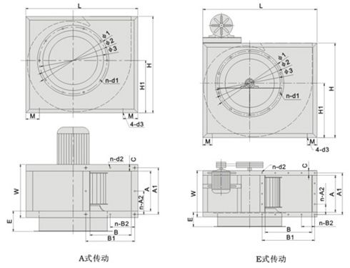 DDL-Ⅰ型風機分A式直聯傳動和E式皮帶傳動兩種結構型式,采用高效前傾多翼式離心葉輪,同一機號風量耿大。配用防爆電機和鋁(不銹鋼)材質葉輪,可制成防爆型。