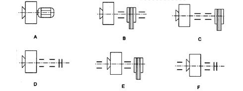 B、C、E式為皮帶傳動,D、F式為聯(lián)軸器傳動。